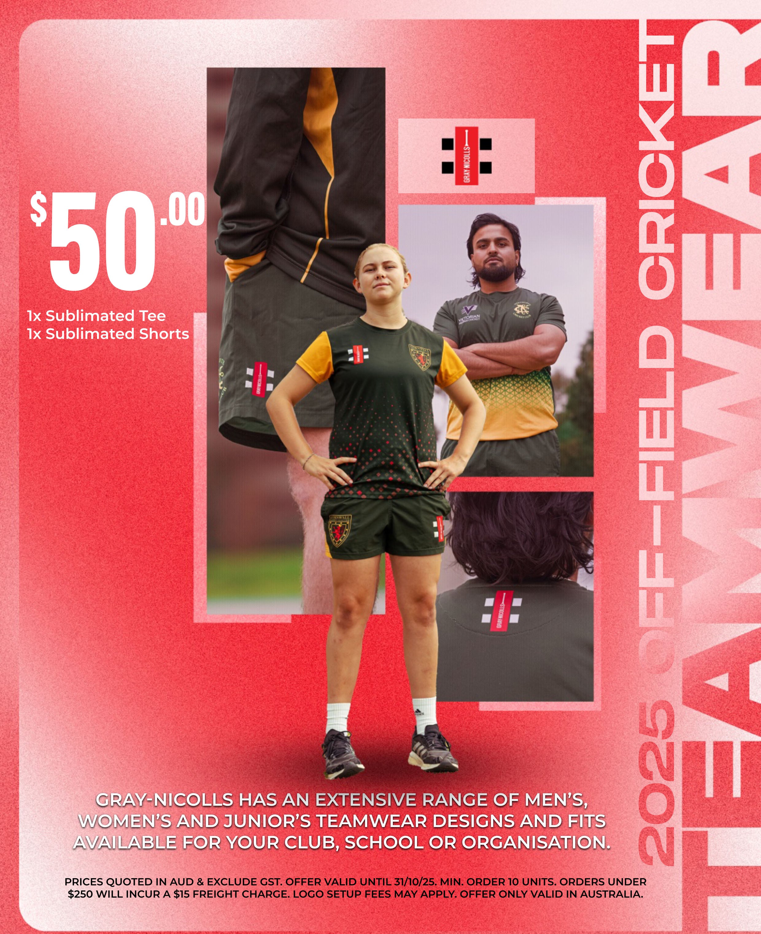 Gray-Nicolls has a long and proud history in Australian and New Zealand cricket, so we understand what matters to teams and associations across the country. We will work with you collaboratively to understand your teamwear objectives and bring your dream designs to life.